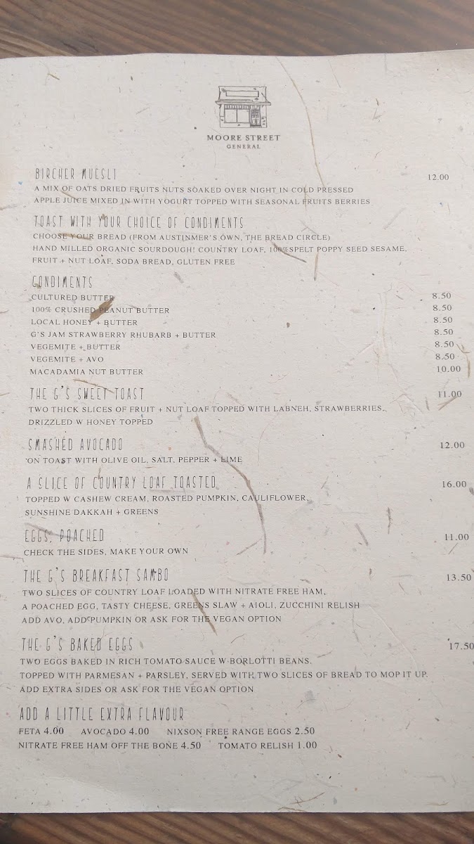 The atmosphere at Moore Street General is filled with a friendly and chilled-out vibe. Whether you’re grabbing a quick takeaway, like Esther Hew did with their strongly brewed coffee, or settling in for a leisurely meal, you can expect attentive service and a relaxed dining environment. Just like Emma Williamson, who has been a loyal customer for seven years, you’re bound to leave with a satisfied palate and a smile on your face.